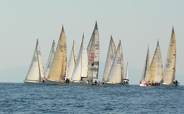 La climatología se alió con la Organización, aunque los pronósticos no eran favorecedores, un viento constante de SW de 5 a 8 nudos de intensidad favoreció el gran espectáculo de cincuenta embarcaciones de gran eslora regateando por la costa aguileña.