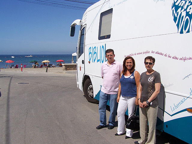 La edil de Cultura del ayuntamiento de Águilas, Clara Valverde, ha visitado esta mañana el Bibliobús, perteneciente a la Biblioteca Regional, que se instalará todos los lunes de verano, de 10’00 a 13’00 horas, en el Paseo Marítimo de Calabardina.