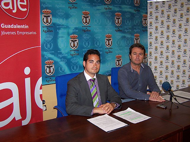 El concejal de Juventud y Empleo del ayuntamiento de Águilas, Francisco Hernández y el presidente de AJE Guadalentín, Juan David Ruiz, han presentado esta mañana, en el consistorio aguileño, un ciclo formativo para jóvenes empresarios que se desarrollará en la localidad.