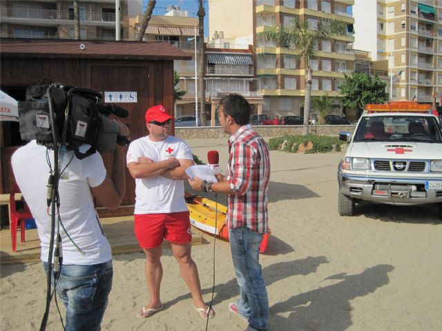 Dos equipos del Programa "Desde Aquí" de la cadena de TV 7 Región de Murcia se han desplazado durante la tarde del miércoles 30 de Junio hasta la Playa de La Colonia de Águilas para transmitir en directo la labor de los Socorristas de Cruz Roja.