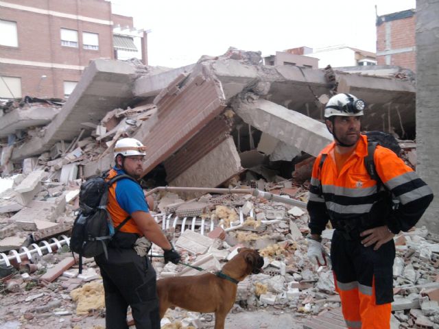 Desde que tuvo lugar el fatídico terremoto de Lorca, los voluntarios de la Unidad Canina de Rescate de Águilas (UCRAG), pertenecientes a la agrupación de Protección Civil, permanecen en la vecina ciudad desarrollando distintas tareas.