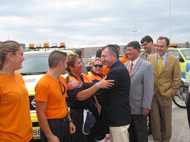 Los voluntarios de Protección Civil, efectivos de la Policía Local y Guardia Civil, bomberos y personal del Centro de Emergencias 1-1-2 Región de Murcia y la Gerencia de Emergencias 061, se suman al servicio de control y vigilancia de las playas de Águilas, prestado por Cruz Roja.