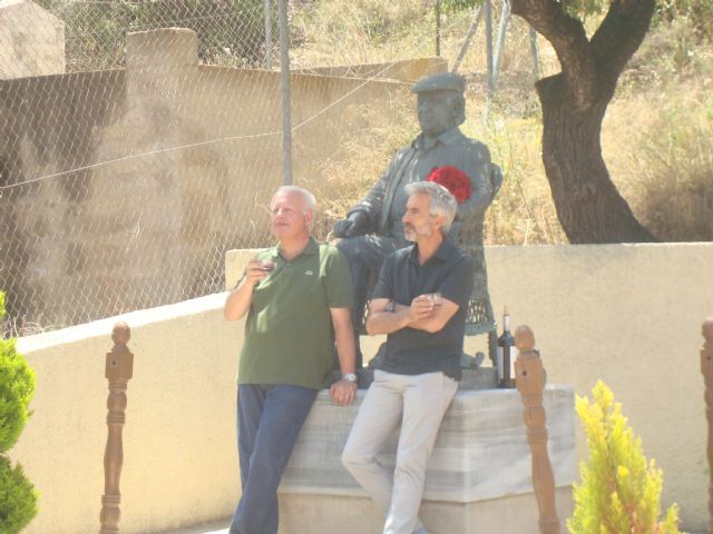Durante el recorrido, los afamados actores y presentadores, Imanol Arias y Juan Echanove, visitaron diferentes lugares de nuestro municipio, destacando la parada que realizaron en la Cuesta de Gos, junto al monumento a Paco Rabal, donde depositaron un ramo de flores y brindaron por la memoria del ilustre actor aguileño.