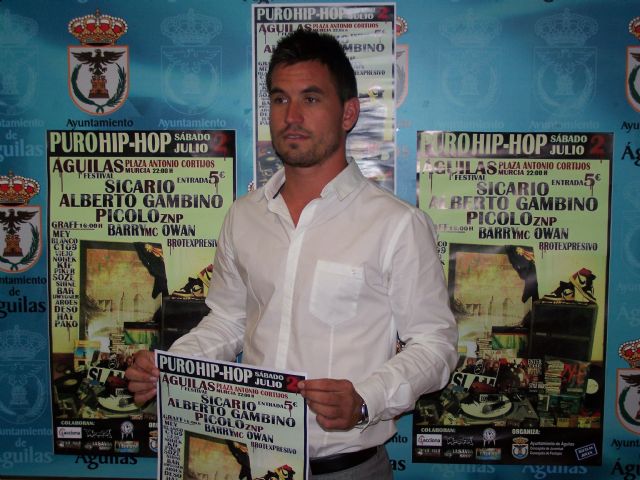 El concejal de Juventud del consistorio aguileño, Juan José Asensio, ha presentado hoy en rueda de prensa el macro-concierto "Puro Hip-Hop", que tendrá lugar el próximo sábado, 2 de julio, a las 22'00 horas, en la Plaza de Antonio Cortijos de Águilas.