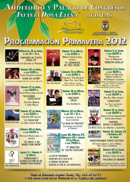 El concejal de Cultura y Patrimonio del Ayuntamiento de Águilas ha querido animar a los ciudadanos a sumarse a este programa de actos, que ofrece unos precios populares, matizando que las entradas se podrán adquirir, de manera anticipada, en "Almeida Viajes" o desde dos horas antes de cada función, en las taquillas del propio Auditorio.