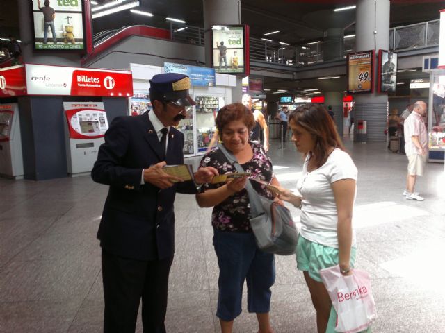 Para la difusión de esta oferta turística se han utilizado 10.000 folletos informativos, incluyendo fotos de la ciudad y otros datos de interés, que se han distribuido por las estaciones madrileñas de Atocha, Sol y Nuevos Ministerios, mediante actores disfrazados de Jefes de Estación de Época, que han despertado la atención de los viandantes al grito de "Pasajeros a la Playa, destino Águilas".