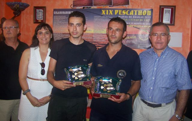 Los campeones de este Pescathón fueron la pareja formada por Juan Antonio Sáez y Francisco David Terrones, de la asociación "Ciudad de Lorca", con un total de 84 piezas, que pesaron casi 6 kilos y medio, lo que les sirvió para ganar el galardón al "Mayor Número de Piezas".
