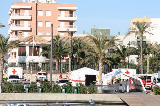 Responsables de distintos organismos relacionados con las emergencias (Servicio de Sanidad Exterior, SASEMAR, Guardia Civil, Brigada de Extranjería y Fronteras, Cuerpo Nacional de Policía, Técnicos de la Administración Regional y representantes de Cruz Roja Española), se reúnen en Águilas para analizar la participación de Cruz Roja en los distintos servicios de colaboración con el Estado en que intervienen en la ayuda humanitaria a inmigrantes que llegan a nuestras costas.