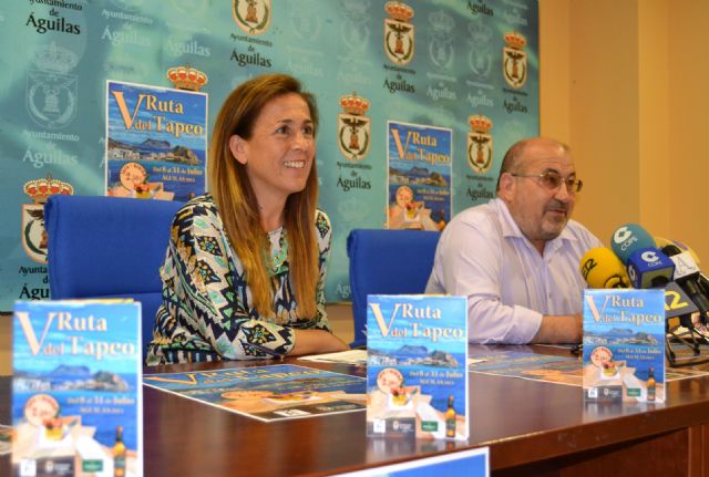 La sala de prensa del consistorio aguileño acogió esta mañana la presentación de la V Ruta del Tapeo, durante un acto que corrió a cargo de la edil de Turismo, Clara Valverde, y el presidente de HosteÁguilas, Vicente Robles.