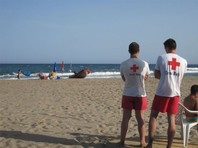 Los Rescatadores Acuáticos de Cruz Roja Española en Águilas, adscritos al Plan Copla 2013 del Ayuntamiento, han tenido que multiplicar sus esfuerzos ante el fuerte viento de levante que ha afectado al litoral aguileño durante todo el fin de semana.