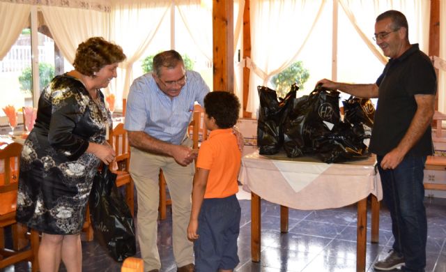 Como es ya tradición, antes de emprender su marcha hasta los campamentos de Tindouf (Argelia), el ayuntamiento de Águilas les organizó una merienda de despedida, donde el primer edil, Bartolomé Hernández, y la concejal de Servicios Sociales, Ana María Miñarro, les entregaron un pequeño detalle compuesto por un macuto con ropa y calzado.