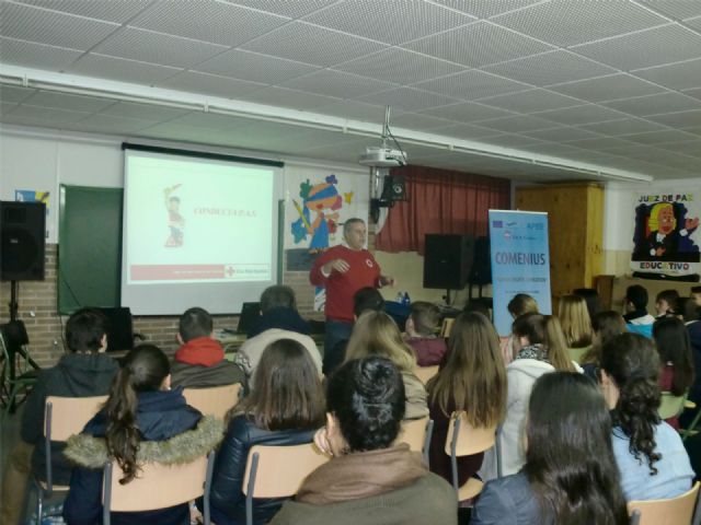 A petición de la Comunidad Educativa del IES "Europa" de Águilas, miembros del departamento de Formación de Cruz Roja Española en Águilas se han desplazado hasta las instalaciones del centro escolar para impartir, a lo largo de toda una mañana, Talleres de Conducta PAS.