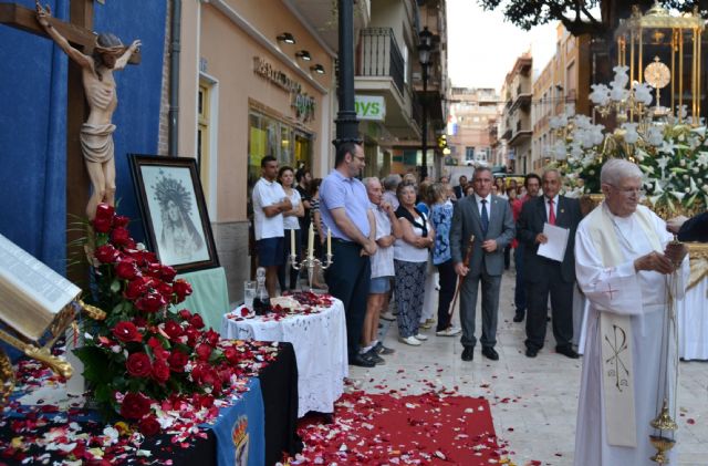 El jefe del Ejecutivo local, Bartolomé Hernández, acompañado de otras autoridades locales, presidió el cortejo que se formó en la calle Luis Prieto, una vez finalizada la solemne misa oficiada en la parroquia del Carmen, transitando posteriormente por algunas de las vías principales del casco urbano de la ciudad, como fueron: la Avenida Juan Carlos I y la arteria Conde de Aranda, hasta llegar a la Plaza de España.