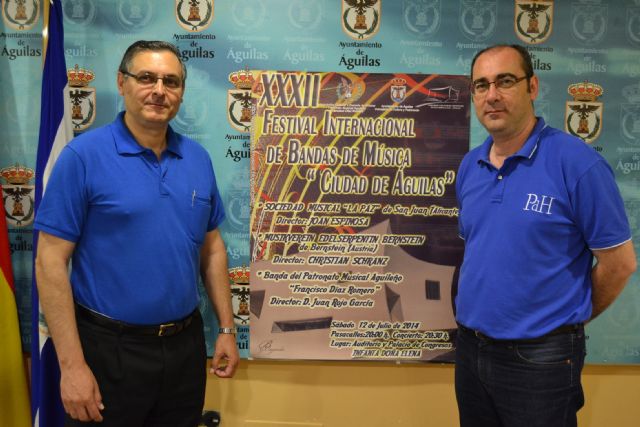 El concejal de Cultura, Francisco Miguel Martínez, y el presidente del Patronato Musical Aguileño, Ramón Rubio, presentaron esta mañana el programa estival de conciertos que ofrecerán la banda escuela y la formación titular de esta institución.