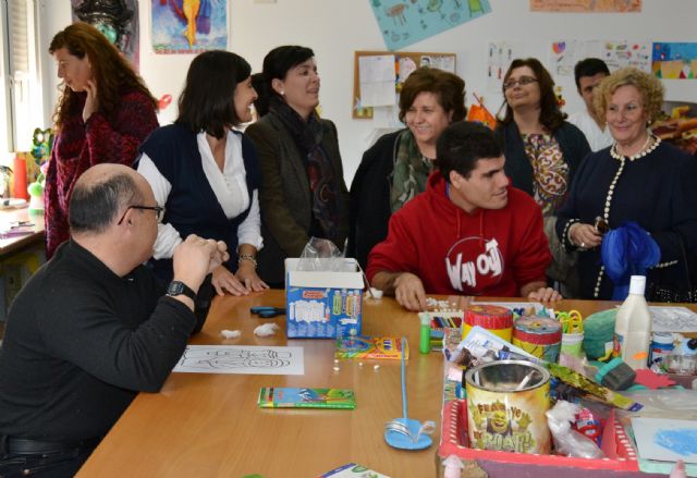 Acompañada de otras autoridades y miembros de diferentes agrupaciones locales, la edil fue recibida por la presidenta del Centro, Josefa López, y por la directora técnica de la Federación de Organizaciones a favor de Personas con Discapacidad Intelectual y Parálisis Cerebral de la Región de Murcia (FEAPS), Elvira Moreno, junto a quienes recorrió los distintos espacios en los que está dividido el edificio.
