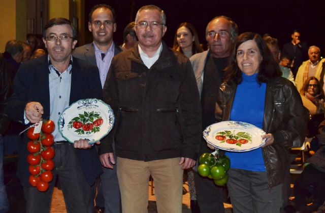El alcalde de Águilas, Bartolomé Hernández, y el concejal de Agricultura, Francisco Navarro, junto al presidente local de Asaja, José Martínez, entregaron ayer los premios del XXI Concurso de Ramillete de Tomate, enmarcado en el programa de fiestas de la Purísima Concepción, en la pedanía del Garrobillo.