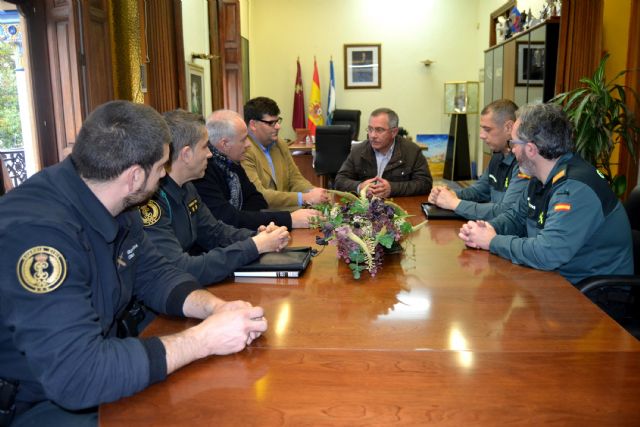 El jefe del Ejecutivo local, Bartolomé Hernández, y el concejal de Seguridad Ciudadana, Francisco Clemente, mantuvieron esta mañana un encuentro con varios oficiales de la Policía Local y de la Guardia Civil, estos últimos GRS pertenecientes a la unidad ARS (Agrupación de Reserva y Seguridad) con base en Valencia, que desde hoy y hasta el próximo 22 de febrero participarán en el Plan de Emergencias Específico del Carnaval.