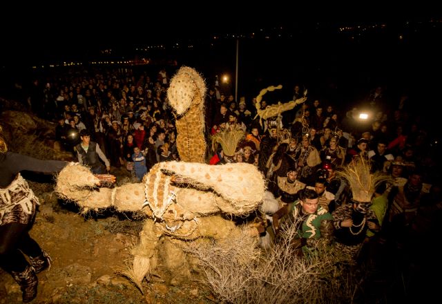 A su llegada al Ayuntamiento, cercada por otras Mussonas con antorchas y tras ser calmada por el sonido de las caracolas, fue recibida por el alcalde de Águilas, Bartolomé Hernández, la edil de Festejos, Clara Valverde, y el presidente de la Federación de Peñas, José Alonso, junto al resto de Personajes del Carnaval, con quienes llevó a cabo el ritual para volver convertir a la fiera en hombre.