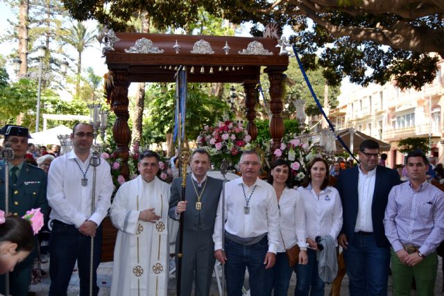 El jefe del Ejecutivo local, Bartolomé Hernández, junto a numerosas autoridades municipales y las hermandades de Torrevieja, Lorca, Garrucha y Murcia asistieron el sábado a la Solemne Misa y bendición de peregrinos que ofreció el consiliario de la Hermandad, Manuel Amatriaín.