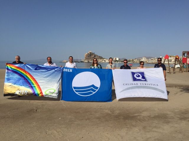 El acto de izada de las banderas, que tenía lugar esta misma semana, corrió a cargo del edil de Turismo, Ginés Desiderio Navarro, la concejala de Medio Ambiente, Isabel María Torrente, el concejal responsable del Bloque Económico-Productivo, Tomás Consentino, además del director de la Oficina de Ordenación de Turismo, Julio Vizuete y la jefa de área de inspección, Cecilia Domínguez.