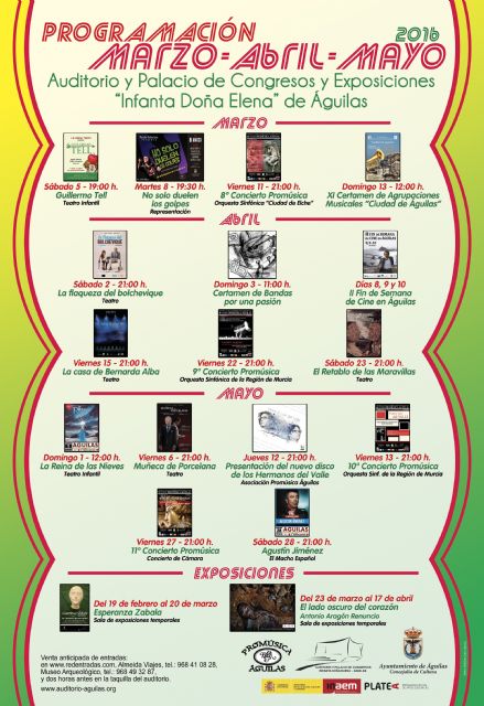 Otro de los aspectos destacados de la programación del trimestre es el trabajo conjunto que desde la Concejalía se ha realizado con los institutos de la localidad a fin de que puedan representarse en Águilas aquellas obras que forman parte de los contenidos curriculares, como es el caso de La casa de Bernarda Alba que Alquibla Teatro llevará a escena el 15 de abril. Del mismo modo, y buscando siempre acercar la cultura a todos, la edil Lucía Hernández recordaba que "desde el pasado diciembre en todas las obras programadas por la concejalía se aplican descuentos para estudiantes y pensionistas y ahora también serán beneficiarios de los precios reducidos las personas desempleadas".