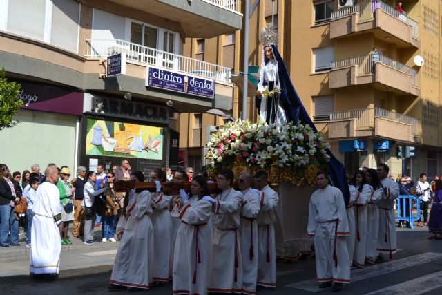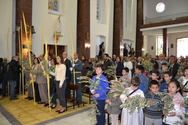 Los actos del Domingo de Ramos comenzaron con la bendición de las palmas y las ramas de olivo en el interior de la parroquia del Carmen tras la que comenzó la procesión, en la que estuvo presente la alcaldesa de Águilas, Mari Carmen Moreno, acompañada de otros miembros de la corporación municipal. Los dos tronos recorrieron las calles Luis Prieto, Juan Carlos I y Rey Carlos III hasta llegar a la parroquia de San José donde se celebró la Santa Misa.