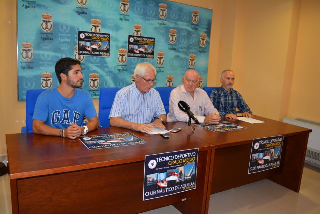 Águilas es el primer municipio que, a través de un Club Deportivo, pone en marcha un Ciclo Formativo reglado por la Consejería de Educación. Se trata del Grado Medio de Técnico Deportivo que el Club Náutico de Aguilas y la Consejería de Educación llevarán a cabo durante todo el mes de octubre. Así lo han comunicado en rueda de prensa el teniente de alcalde, Vicente Ruiz, el concejal de Deportes, Cristóbal Casado, el secretario del Club Náutico, Miguel Navarro, y el director del Centro educativo del citado club, Pedro Juan Pérez Castejón.