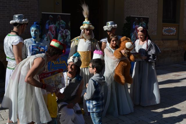 Más de un centenar de juguetes fueron donados por las familias aguileñas el pasado fin de semana en la actuación de "Aladín, un musical genial" en la Plaza de España de Águilas, en la misma puerta del Ayuntamiento. Sus componentes interpretaron en riguroso directo un número del espectáculo que llega al Auditorio el 23 de Diciembre, del cual pudieron disfrutar pequeños y mayores que allí se encontraban.