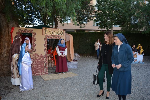 El Belén viviente fue visitado por cientos de aguileños, entre ellos la alcaldesa de Águilas, Mari Carmen Moreno, y la edil de Personal del Ayuntamiento de Águilas, Isabel Fernández, quienes acompañadas de la directora del centro, sor María Eugenia Serrano, realizaron un recorrido por todos los pasajes de este gran Belén viviente.