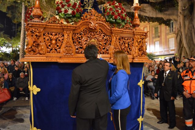 Las imágenes de Nuestro Padre Jesús del Prendimiento y la Oración en el Huerto, del Paso Azul, y Santiago Apóstol y la Virgen de la Amargura (Cofradía de Santiago) recorrían ayer las calles de Águilas en la procesión del Miércoles Santo.