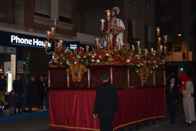 Pasadas las nueve de la noche se abrían las puertas de la iglesia de Nuestra Señora de los Dolores, punto de formación e inicio de esta procesión, para dar paso a un recorrido de más de tres horas que vivió su momento de mayor emoción en la iglesia de San José; lugar donde la imagen de la Patrona de Águilas, la Virgen de los Dolores, esperaba el paso del resto de imágenes en procesión.