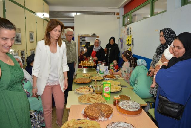 Otra de las actividades destacadas de esta Semana Cultural, a la que hoy han asistido la alcaldesa de la localidad, Mari Carmen Moreno, y el edil de Educación, Vicente Ruiz, ha sido la visita del pintor aguileño Pedro Juan Rabal quien ha sido el encargado de realizar un mural en el hall del centro cuyo tema principal es el hermanamiento entre las distintas culturas.