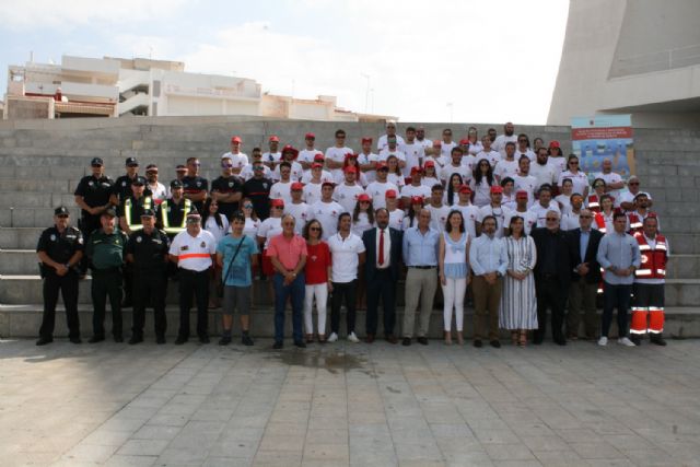Cruz Roja Española en Águilas es la organización que aporta un mayor número de integrantes al Plan Copla del Ayuntamiento, ya que entre profesionales y voluntarios suman cerca de 120 efectivos que, a partir de hoy y hasta el domingo 9 de septiembre, darán cobertura sanitaria y rescate en las 14 playas de la ciudad que cuentan con vigilancia permanente, a los que se suma la Vigilancia Dinámica en el resto de litoral de la ciudad.