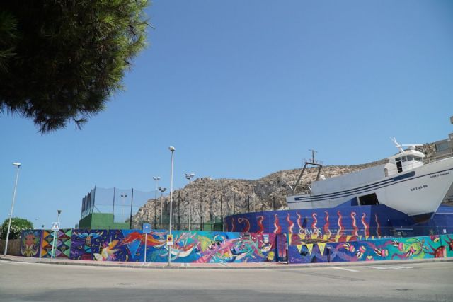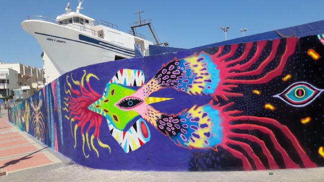 Se trata de una explosión de vida llamada "Cadena Trófica Infinita", una obra de gran magnitud realizada sobre las paredes del Centro de Interpretación del Mar (CIMAR), situado en la zona conocida como el Hornillo.