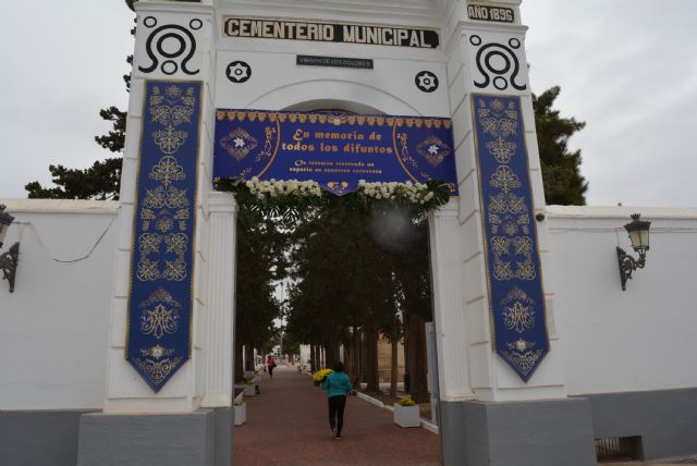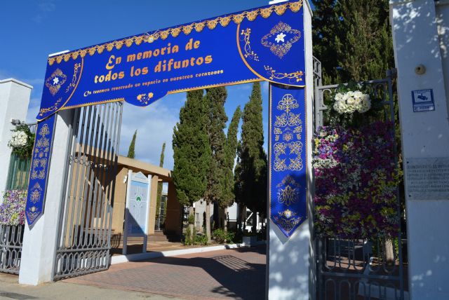 Otra de las novedades que los visitantes del cementerio encontrarán este año es la instalación de dos arcos florales instalados en las puertas de acceso con la inscripción "En memoria de todos los difuntos. Os tenemos reservado un espacio en nuestros corazones" con los que el Ayuntamiento quiere rendir homenaje a todos los difuntos cuyos restos reposan en el cementerio aguileño.