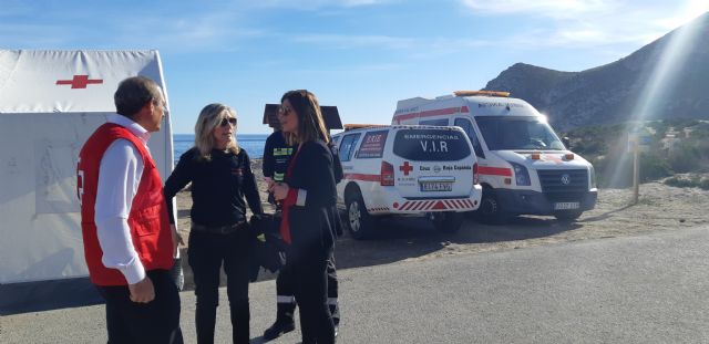 Esta mañana, la Alcaldesa de Águilas, Mari Carmen Moreno, se personaba en la Zona del Área de Vida situada junto a la Torre de Cope, donde era recibida por el Presidente de Cruz Roja Española en Águilas, Miguel Molina Sánchez, a quien acompañaban miembros del Equipo Directivo y de Coordinación de Socorros y Emergencias de la organización en el municipio aguileño