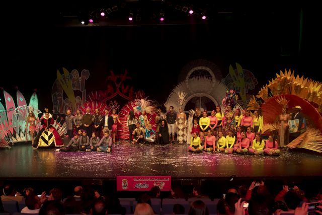 Un año más, los integrantes del taller de papel del Carnaval lograron el aplauso unánime del público dejando patente su capacidad para confeccionar magníficos trajes en los que se utiliza como único elemento el papel. En esta ocasión fueron un total de cuatro diseños los que lucieron sobre el escenario, acompañados de una puesta en escena a la altura de un Carnaval declarado de Interés Turístico Internacional. Tras una dura deliberación de los miembros del jurado compuesto por la alcaldesa de Águilas, Mari Carmen Moreno; el edil de Carnaval, Cristóbal Casado; el presidente de la Federación de Peñas, José Alonso; y los personajes adultos e infantiles del Carnaval, "Frozen de Carnaval" lograba el primer premio del certamen.