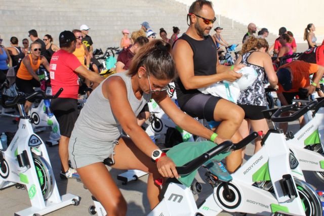 Al acto asistieron la concejala de Igualdad, del Ayuntamiento de Águilas, Elena Casado, y el edil de Hacienda, Jose Manuel Gálvez, brindando su apoyo a los asistentes y organizadores y agradeciendo la colaboración de las personas que aportaban su granito de arena, respaldados por el lema ¡Pedalea tres horas por una buena causa!