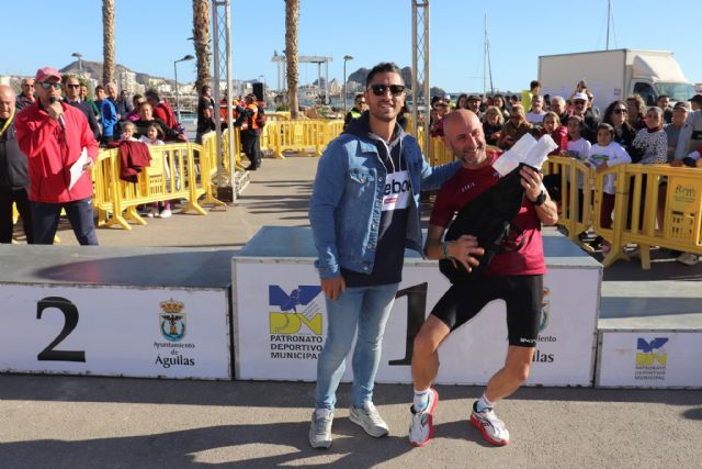 En categoría femenina ha sido Natalia Hidalgo Martínez, del Nogalte Hogar (Puerto Lumbreras), con un tiempo de 0h:22': 18", la primera en ocupar el podio.Los encargados de la entrega de trofeos y cestas navideñas a los tres primeros clasificados en las diferentes categorías, han sido los concejales del Ayuntamiento de Águilas, Cristobal Casado, responsable del área de Deportes, y José Manuel Gálvez, encargado de Hacienda.