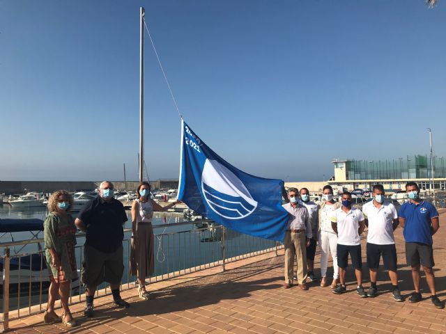 La alcaldesa de Águilas, Mari Carmen Moreno, y el edil de Turismo y Educación Medioambiental, Ginés Desiderio Navarro, han participado hoy en el izado de las Banderas Azules conseguidas por el municipio.