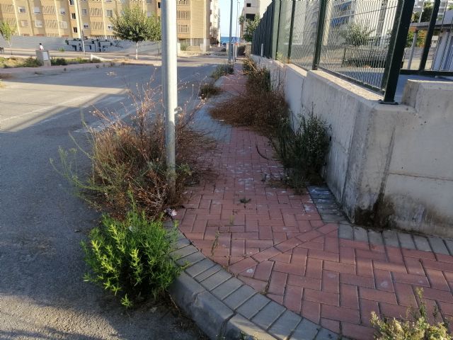 Según denuncian, este espacio, inaugurado hace apenas cinco años, presenta un estado "vergonzante". "Decenas de residuos plásticos y orgánicos se acumulan en las esquinas del recinto y hay hierbas que crecen entre la calzada, dificultando la circulación peatonal por la misma".