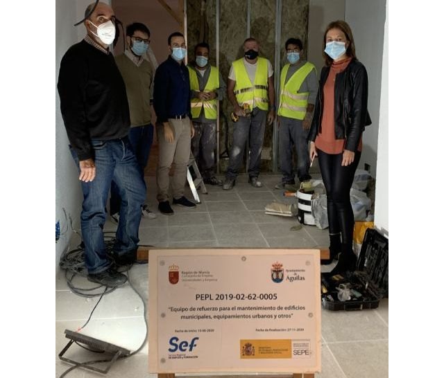 Desde el Servicio Municipal de Empleo y Formación se tramitan las ayudas del programa de empleo público; un programa en el que el Ministerio de Empleo y Seguridad Social financia el 100% del coste salarial total de los trabajadores contratados y el Ayuntamiento de Águilas todos los materiales de construcción y equipamientos empleados.