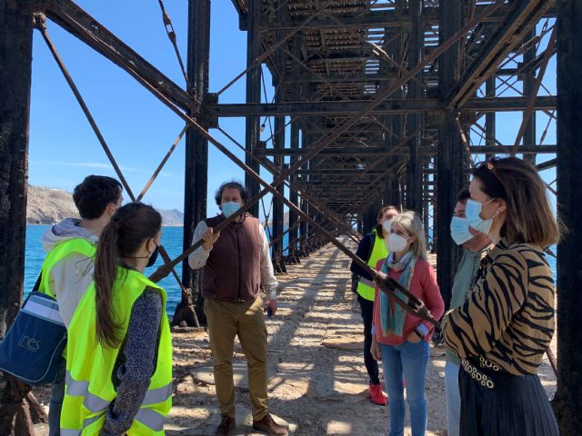 Los técnicos responsables de la redacción del proyecto de restauración del Embarcadero del Hornillo, han visitado esta mañana el emblemático monumento acompañados por la alcaldesa de Águilas, Mari Carmen Moreno, la edil de Cultura, Maido Simó, el arquitecto municipal, Javier Rollán, y los arqueólogos Juan de Dios Hernández y Ricardo Yesares. Esta toma de contacto física, según han explicado los ingenieros Miguel Hernández, Giusy di Pinto y Laura Serra, de la empresa adjudicataria del proyecto INES Ingenieros Consultores, "se orienta hacia las estrategias y pautas a seguir en cuanto a su restauración y permitirá poner las bases para programar las distintas intervenciones futuras y el resultado final para su puesta en valor integral". El arqueólogo municipal, Juan de Dios Hernández, ha añadido que "ahí radica la importancia de esta toma de contacto, donde a nivel técnico debemos consensuar criterios desde los organismos implicados, que son la Dirección General de Bienes Culturales, el Ayuntamiento de Águilas y el equipo redactor del proyecto y director de obras".