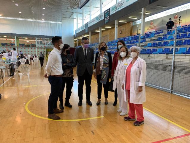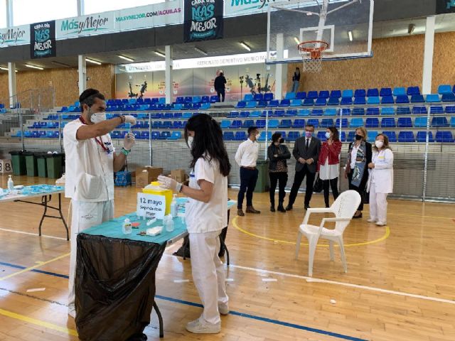 Junto a la alcaldesa de Águilas, ha visitado el Pabellón Diego Calvo Valera para ver in situ el desarrollo de las vacunaciones masivas el secretario general del PSRM, Diego Conesa