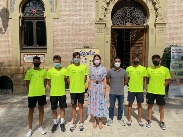 En la mañana de ayer la alcaldesa del Ayuntamiento de Águilas, Mari Carmen Moreno, acompañada del concejal de Deportes, Cristóbal Casado, recibió a las puertas del consistorio a una representación de nadadores aguileños que participarán en diferentes campeonatos de España. Se trata de Alfonso Cegarra Mulero y Pablo Robles Jiménez que estarán presentes en el Campeonato de España Infantil de Natación de Verano. El mencionado evento deportivo se celebrará en Sabadell del 20 al 23 de julio. Cegarra competirá en las siguientes modalidades :200 metros mariposa, 400 metros estilos, 100 metros braza, 200 metros braza y 200 metros estilos. Por su parte, Pablo Robles lo hará en 400 metros estilo, 200 metros espalda y 200 metros estilo.