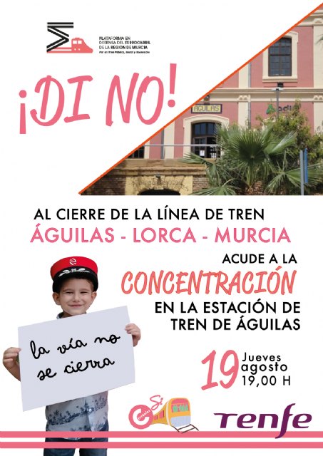 Águilas no puede permitir que sus estudiantes universitarios, trabajadores, jubilados, o los ciudadanos que se desplazan a Lorca a consultas médicas, así como los veraneantes que vienen a nuestro pueblo a pasar sus vacaciones, o los viajeros que utilizan el "TREN DE BAÑOS", no puedan trasladarse en tren, cuando efectivamente y a pesar de sus deficiencias es un servicio público, seguro y sostenible, que puede afectar negativamente en la economía del municipio.