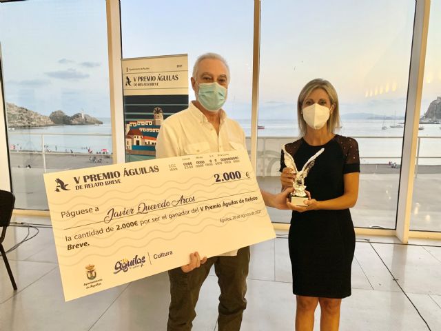 El hall del Auditorio acogió un año más el acto de entrega del Premio Águilas de Relato Breve, que este año celebró su quinta edición. "Luz de Bengala", del madrileño Javier Quevedo Arcos se hizo con el galardón, recibiendo de manos de la edil de Cultura Maido Simó un cheque de 2.000 euros. Se trata de una historia que no deja indiferente, con altas dosis de ternura, de angustia en muchos momentos, donde el pilar indiscutible es el amor.