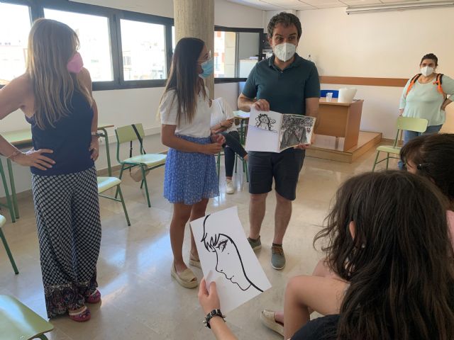 A través del arte uno puede exteriorizar vivencias y emociones que el subconsciente mantiene latentes bajo otras sensaciones y también puede curar heridas, traumas o inseguridades. Por ese motivo, la concejalía de Igualdad ha organizado este verano un Taller de Estimulación Creativa y la Identidad Adolescente, que ha sido impartido por MURARTT (Asociación profesional de Arteterapeutas de la Región de Murcia). Esta actividad de sensibilización se ha dirigido a adolescentes entre 13 y 17 años, que recibieron la visita de la concejala de Igualdad, Elena Casado, durante una se las sesiones, mostrándole algunas de sus obras y explicándole el significado de ellas. "Vivimos una cultura que desvaloriza lo íntimo y da valor a la falta de interioridad. Esto está acrecentado por las redes sociales que imponen que la adolescente debe de ser transparente y debe de aspirar a ser de interés. Esto es peligroso si no se sabe gestionar bien. Además, la publicidad y los roles de género subliminales, así como la fortaleza de los micromachismos, pueden forjar conductas que son muy dependientes. El objetivo de este taller es ayudar a las adolescentes a construir su identidad de forma libre a través del proceso creativo", ha comentado la edil de Igualdad.