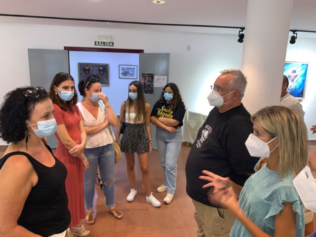 La edil de Cultura, Maido Simó, inauguró ayer la exposición "Enredadas" de Lorena Belzunce, que puede visitarse hasta el 30 de septiembre, de lunes a viernes, de 18 a 21 horas en la Sala de exposiciones Manuel Coronado de la Casa de la Cultura Francisco Rabal. Se trata de la primera exposición individual de esta joven artista aguileña, estudiante de Bellas Artes
