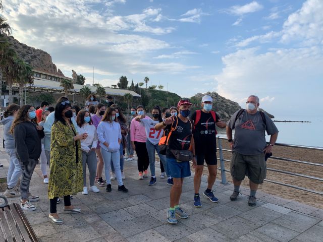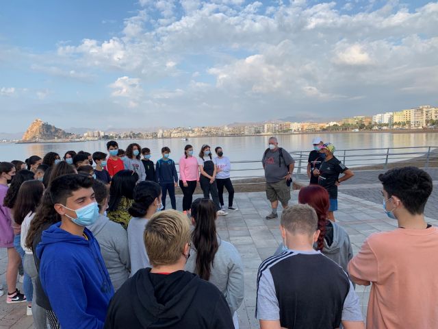 Los corredores Manuel Rico y José Alcaraz Rivas han elegido Águilas como punto de partida para recorrer la costa murciana en 24 horas, con el objetivo de concienciar sobre la importancia de reciclar y denunciar la problemática medioambiental existente con los plásticos. Para ello, han sido recibidos por el edil de Educación Medioambiental, Ginés Desiderio Navarro, y por la directora del IES Alfonso Escámez, Charo Clares, que le han mostrado los proyectos educativos medioambientales que está llevando a cabo este Centro Educativo aguileño. Los alumnos de varias aulas han salido al exterior del Instituto a animar a los corredores en la Salida de este Reto que culminará mañana en San Pedro del Pinatar, recorriendo más de 124 kilómetros.